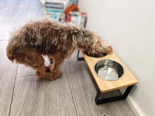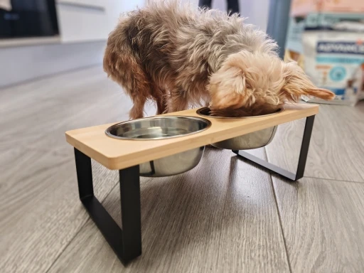 Elevated Pet Bowl Set – Stylish Wooden Stand with 2 Stainless Steel Bowls for Cats & Small Dogs