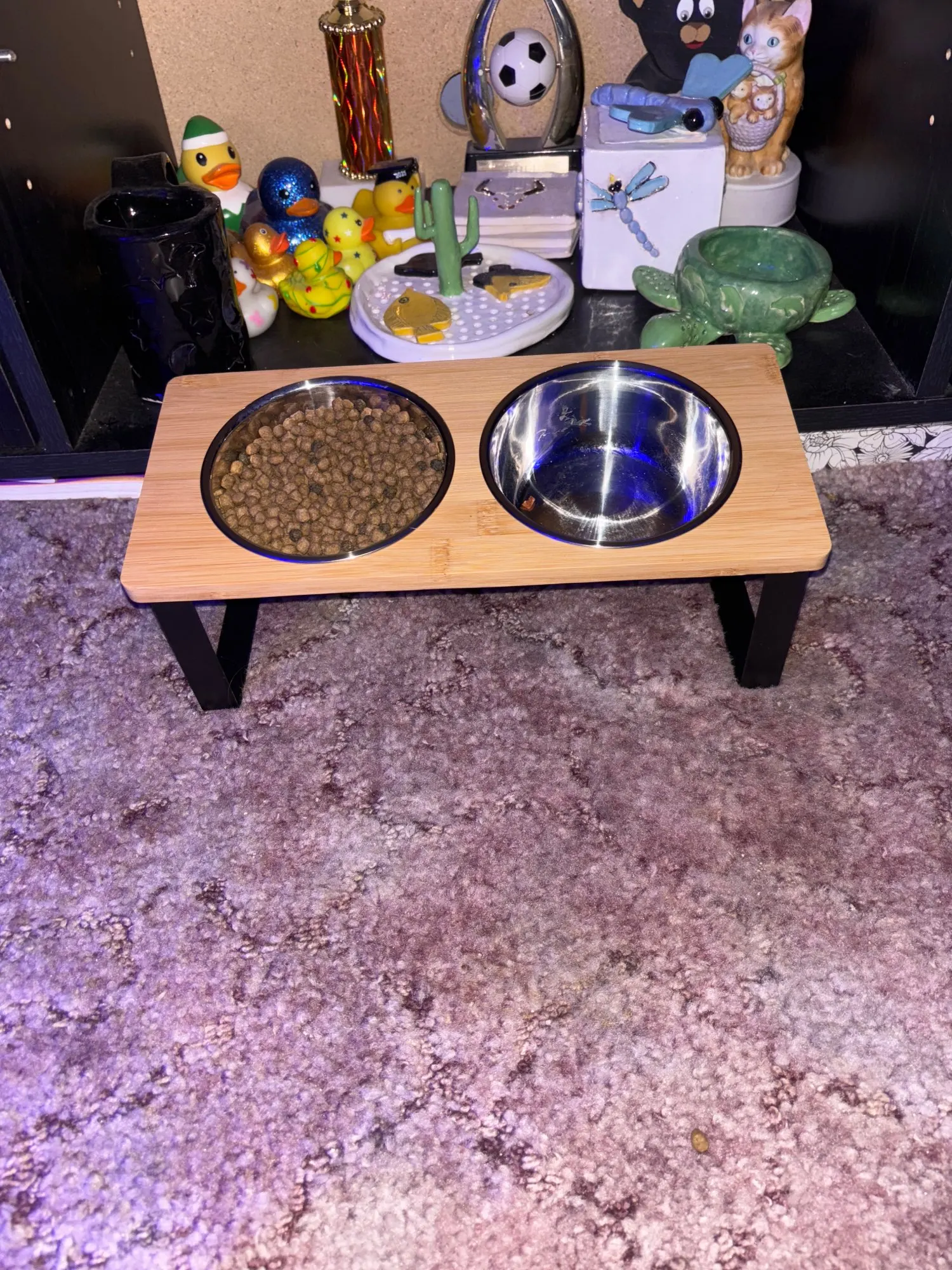 The cat food and water bowl set are made of stainless steel bowls which are rust-resistant and removable. Dishwashers safe and easy to clean. no odor wood is waterproof and long lasting